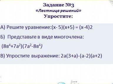 Б) Представьте в виде многочлена: (8B4+7a2)(7a2-8B4)