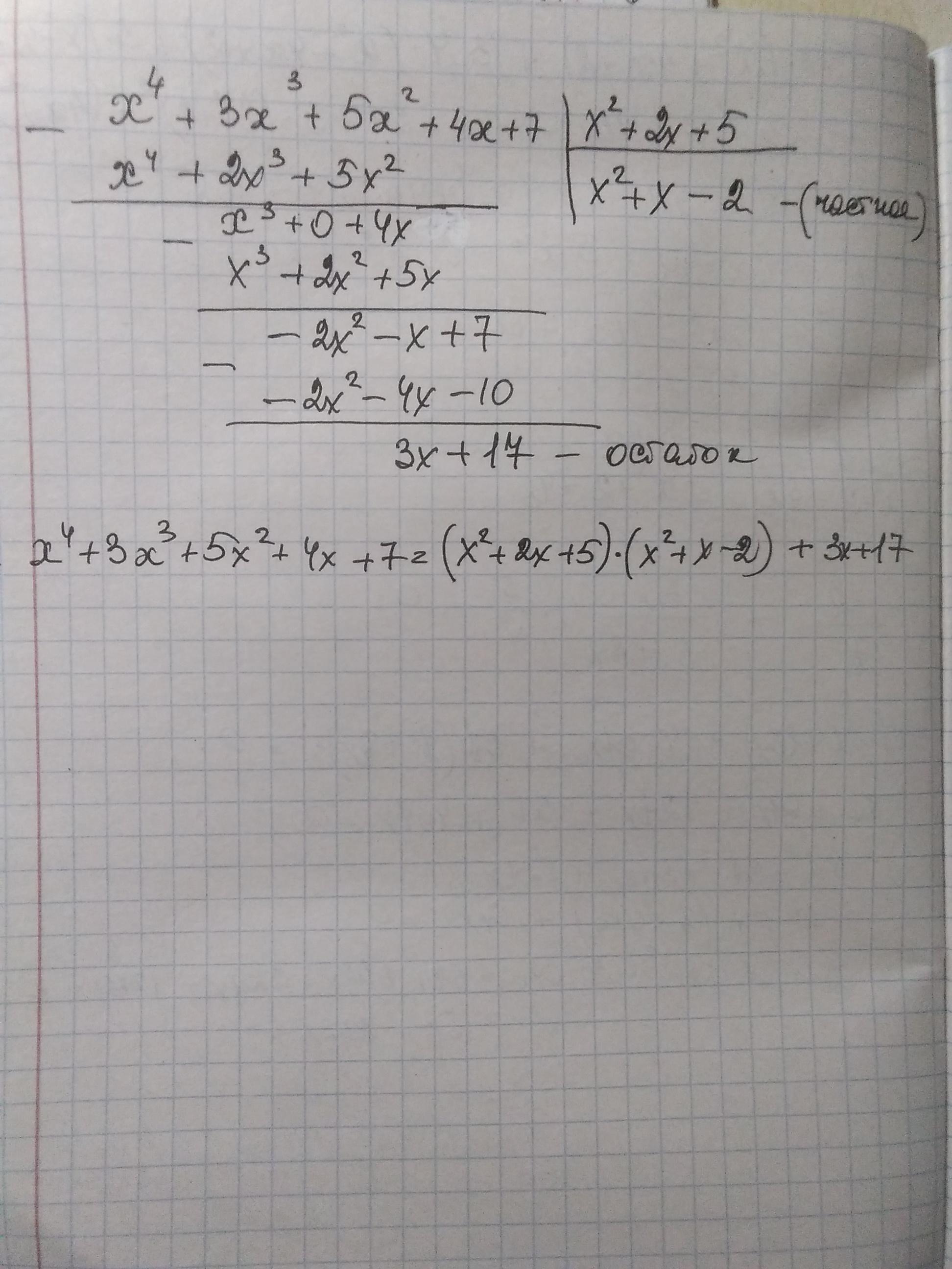 P(x)=x⁴+3x³+5x²+4x+7, Т(x) = x²+2x+5