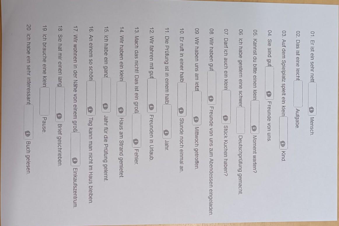 20. Ich habe ein sehr interesantes Buch gelesen.