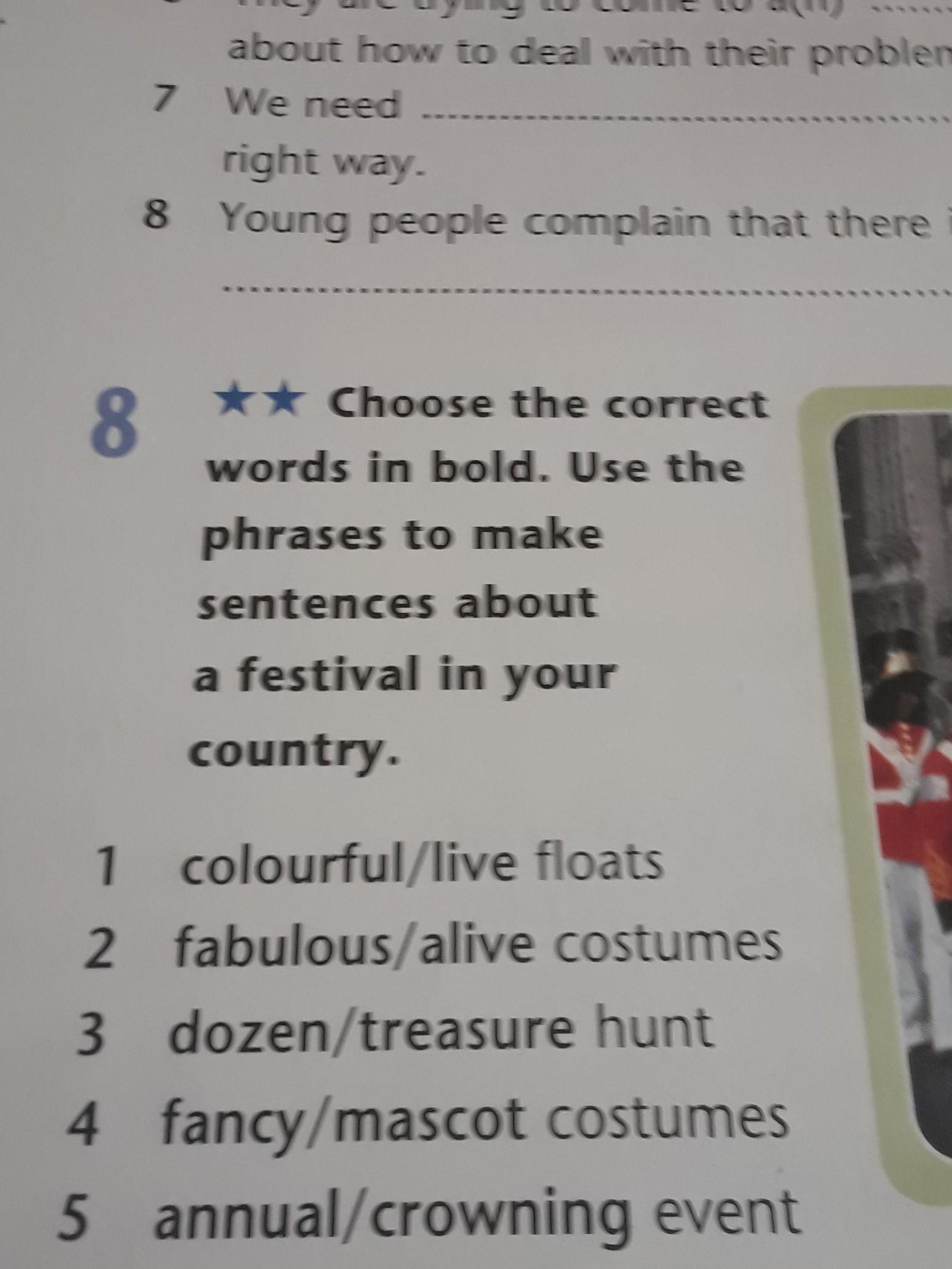 В остальном: Fabulous costumes (красочные костюмы), treasure hunt (охота за сокровищами), fancy costumes (изысканные костюмы), annual event (ежегодное событие или мероприятие)