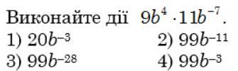 При перемножении степени складыватся, значит итоговая степень будет 4 - 7 = - 3. Ну и 9 * 11 = 99