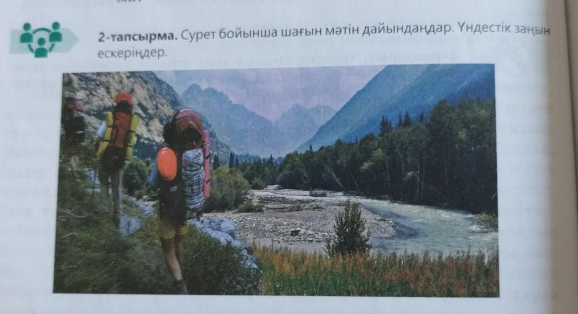2-тапсырма. Сурет бойынша шағын мәтін дайындаңдар. Үндестік заңын ескеріңдер.