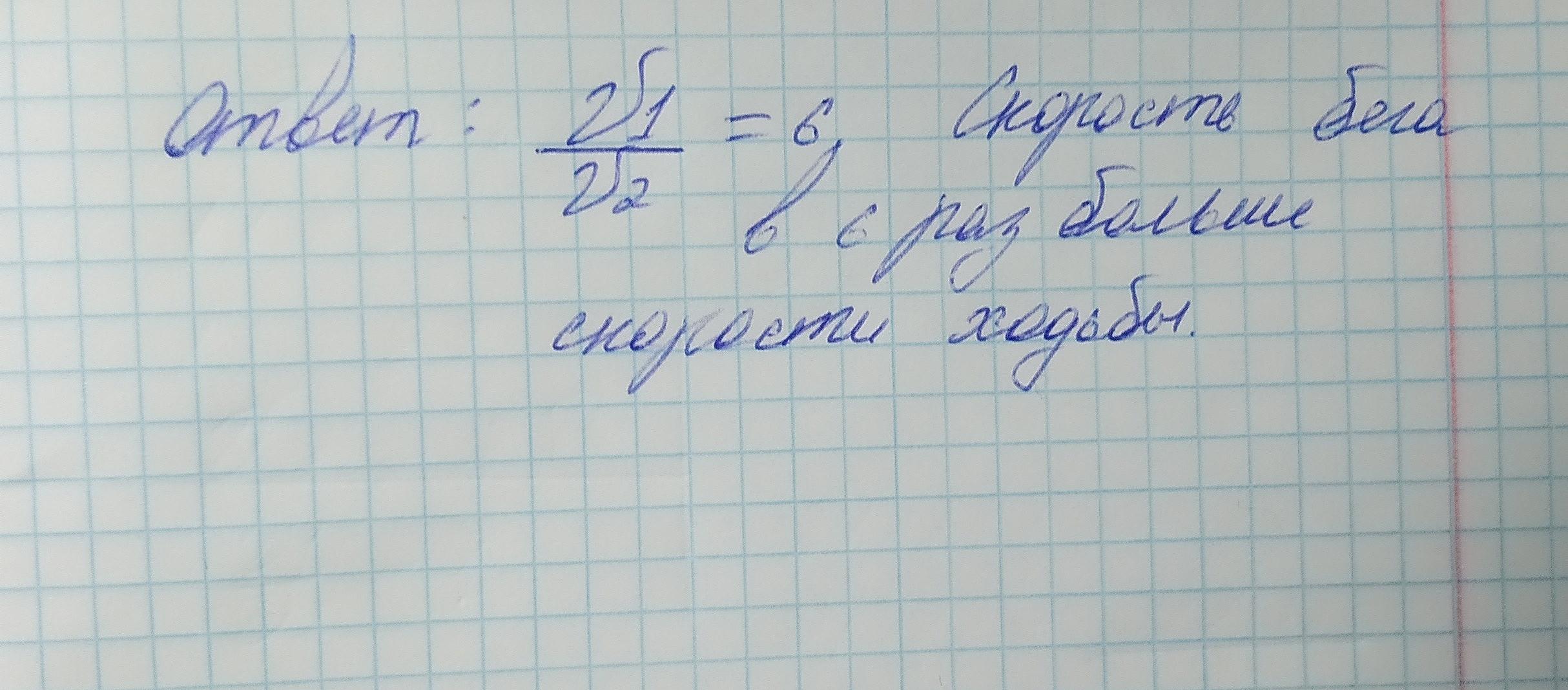 Ответ: Скорость бега в 6 раз больше скорости ходьбы.