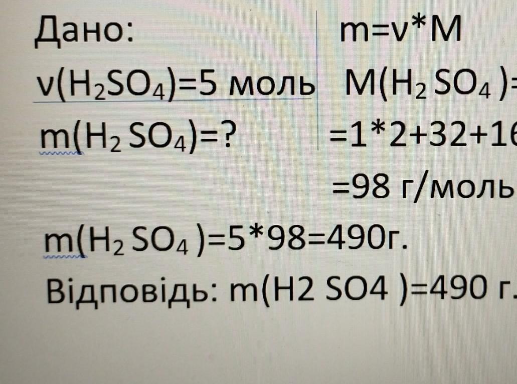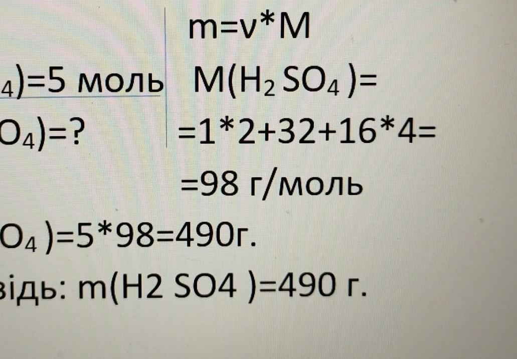 m(H2SO4) = V × M = 5 × 98 = 490 г