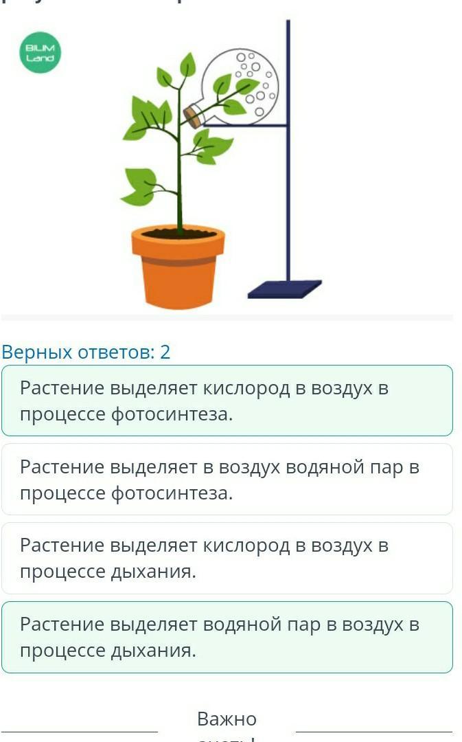 вообще-то в процессе дыхания растения выделяют углекислый газ, хотя ответ и является правильным, но в то же время он не совсем корректн