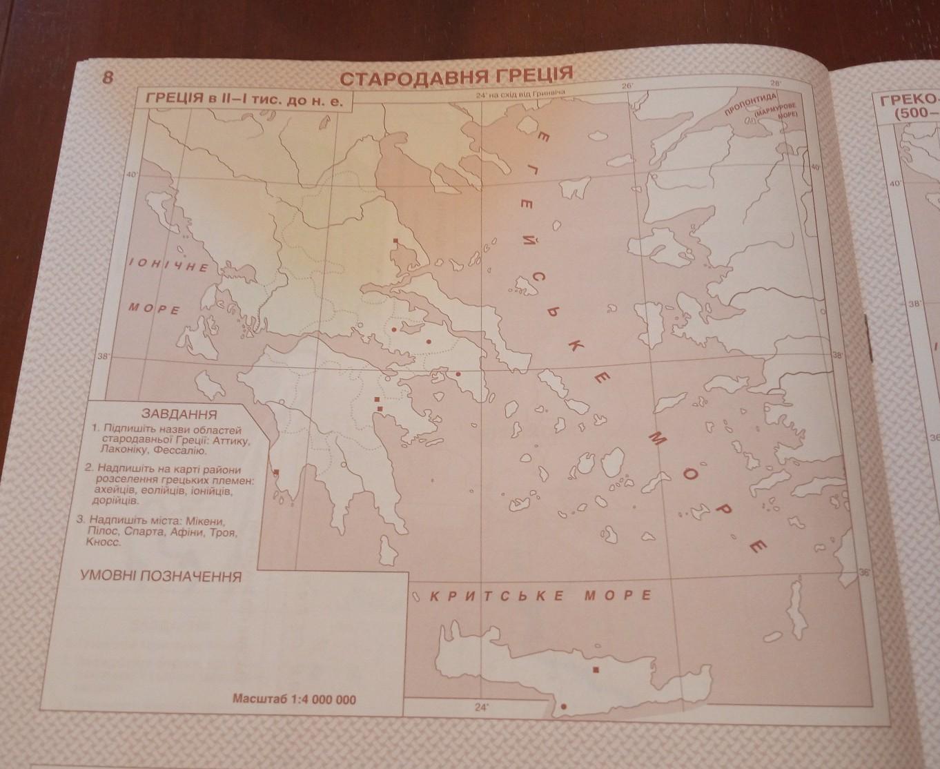 Центральной областью Пелопоннеса была Аркадия, которая граничила на западе с Элидой, на юге с Мессенией и Лаконией, на севере с Ахайей, на востоке с Арголидой, Флиунтией и Сикионией. В крайнем северо-восточном углу полуострова располагалась Коринфия. Островная Греция насчитывала несколько сот островов (самые крупные — Крит и Эвбея), образовывавших три больших архипелага: Киклады на юго-западе Эгейского моря, Спорады в восточной и северной его части и Ионические острова в восточной части Ионического моря. Балканская Греция, в основном, гористая страна (её пронизывают с севера на юг два ответвления Динарских Альп) с чрезвычайно изрезанной береговой линией и многочисленными заливами (самые крупные — Амбракийский, Коринфский, Мессенский, Лаконский, Арголидский, Саронический, Малийский и Пагасейский)[10].