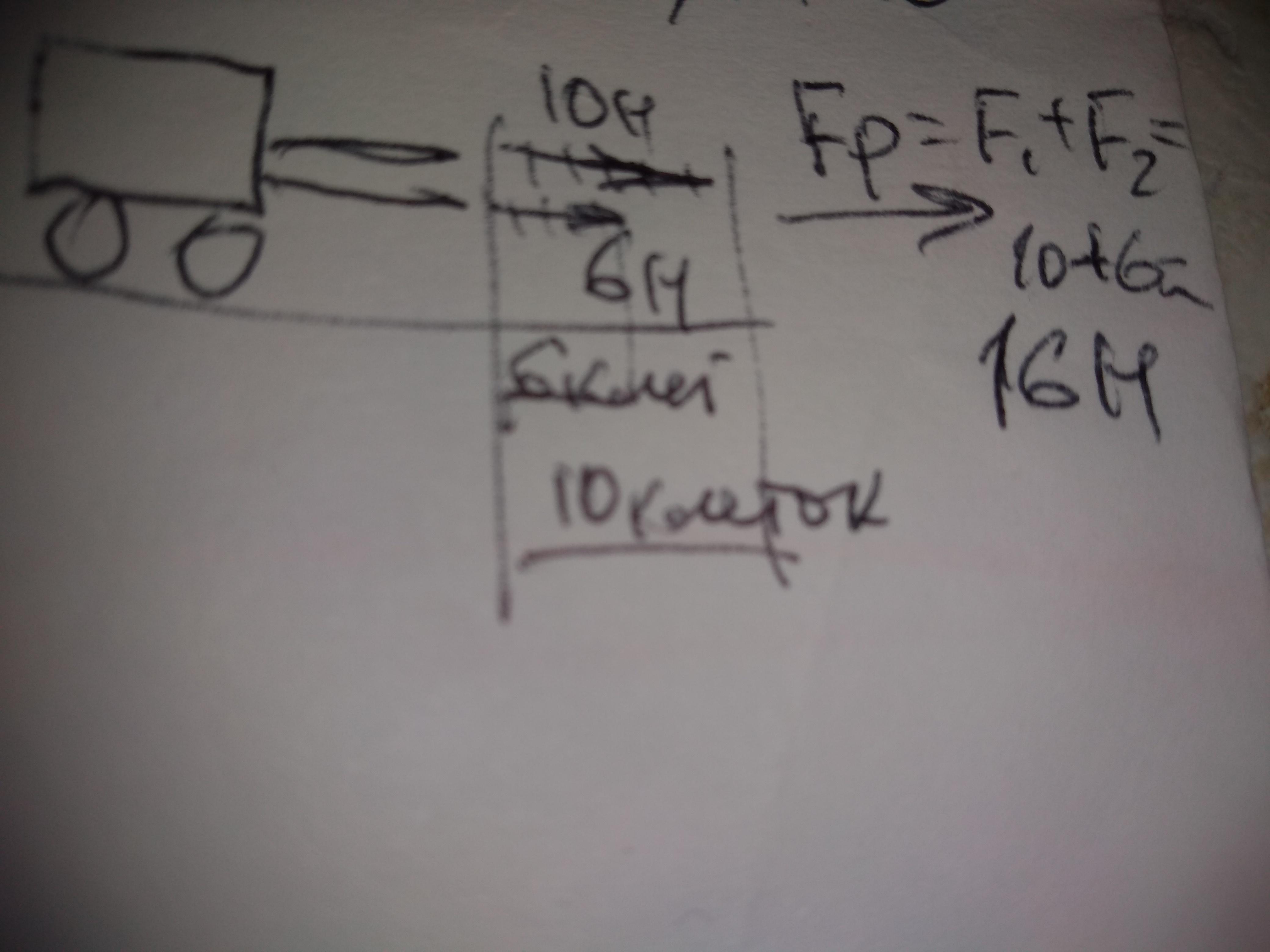 До візочка прив'язали дві нитки. За них тягнуть у горизонтальному напрямку вздовж однієї прямої із силами 10 і 6Н. Накресліть малюнок із зображенням сил, які прикладені до візочка у масштабі 1 клітинка : 1 Н. Визначте рівнодійну цих сил. срочно дам 20 баллов