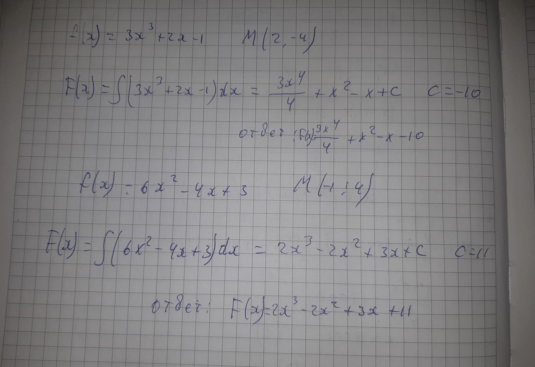 a) f(x)=3x³+2x-1, M(2-4);