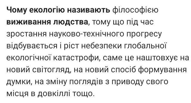 Объяснение: Основним закликом екології є збереження природнього балансу і підтримання здоров'я людства. Коли люди беруть до уваги ці дві сторони і поглиблюють зв'язки між своїм поведінкою, їхнім впливом на природу та балансом природи, то це гарантує людству можливість жити на Землі, тим самим формуючи екологію як філософію виживання людства.