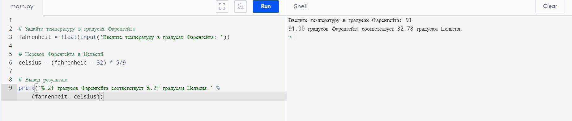 fahrenheit = float(input('Введите температуру в градусах Фаренгейта: '))