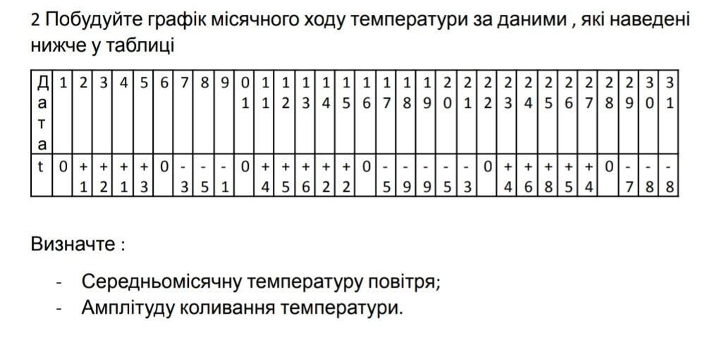 Допоможіть, будь ласка, визничити Середньомісячну температуру повітря та Амплітуду коливання температури