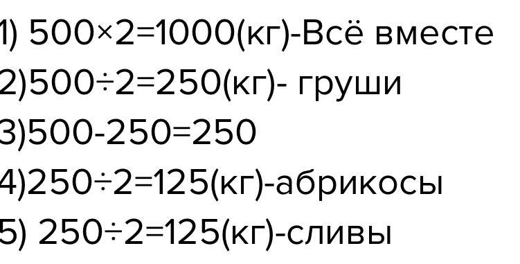 4. Сливы 1/8 всех фруктов = 1000/4=125 кг