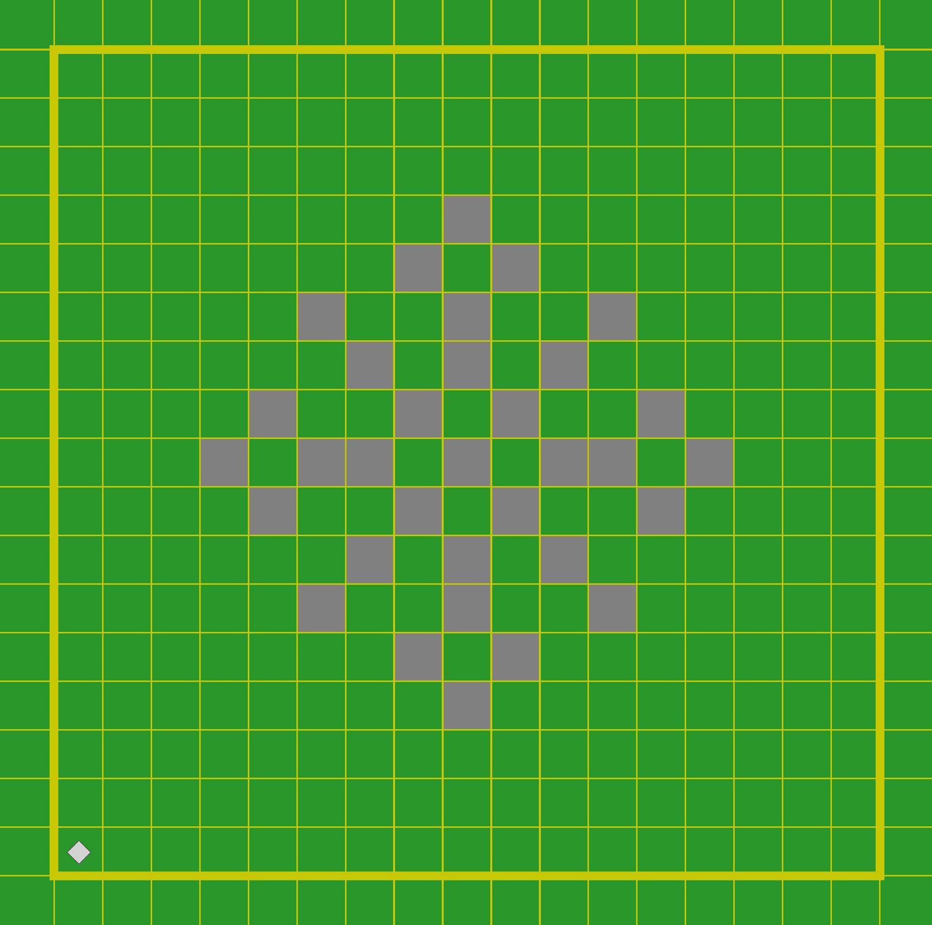Тут используется пустое поле размером 17x17 клеток, начальное положение робота- левый верхний угол.