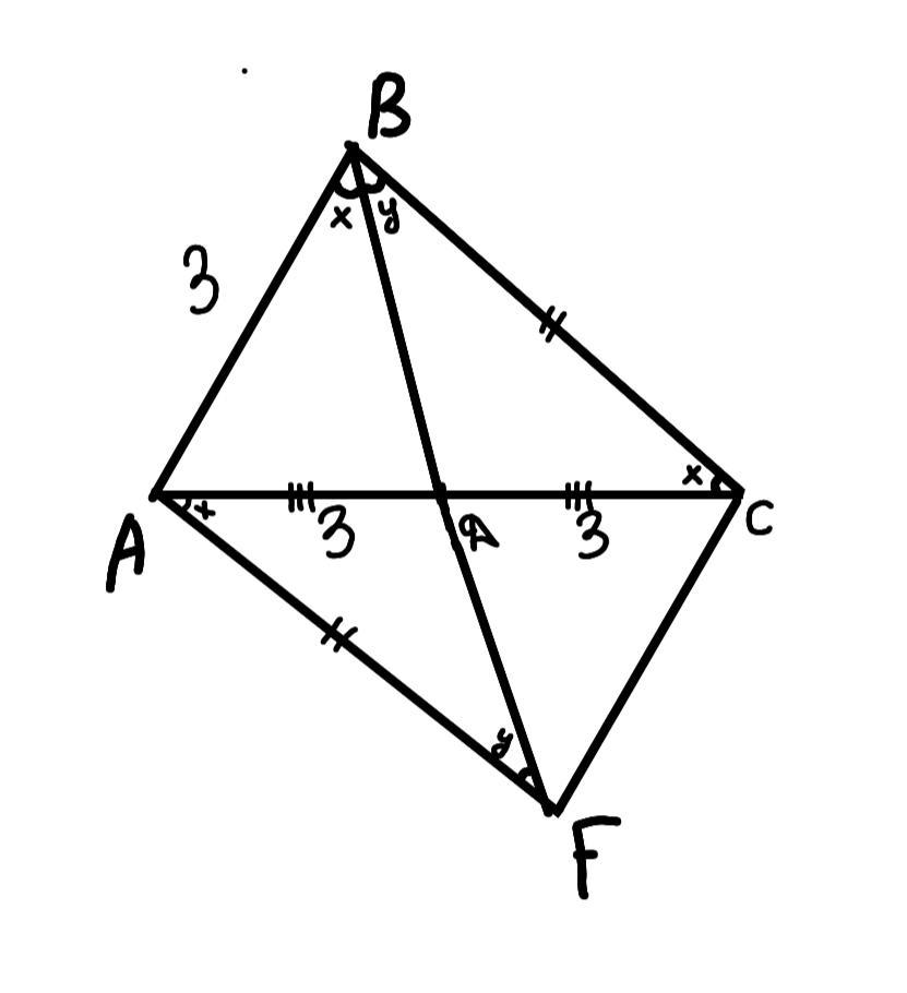 Доводимо до паралелограма, знаходимо рівні трикутники ADF та BCD( рівні за стороною AF = BC та 2 прилеглими кутами до неї ), якщо трикутники рівні, то й рівні відповідні сторони, AD = DC = 3 см