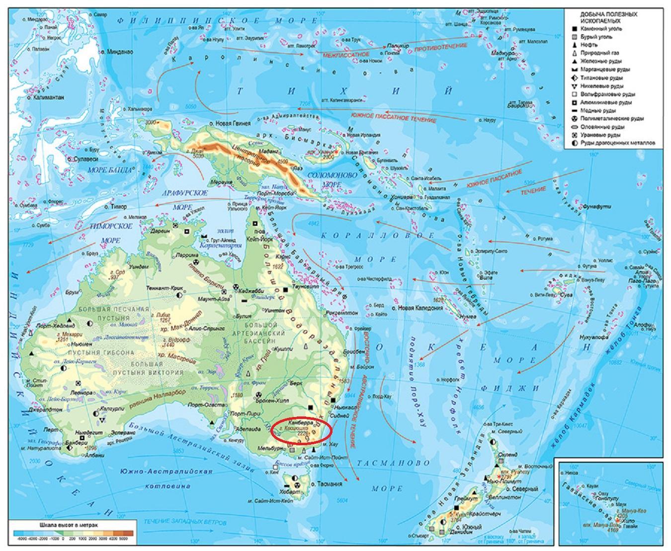Встановіть об'єкти, які характеризують такі цифрові записи: -16.... 2208.. 37° пд. ш. 148° сх. д. 1235.. Знайдİть ці об'єкти на карті. Який з них позначається на карті рожевим кольором? Чому?