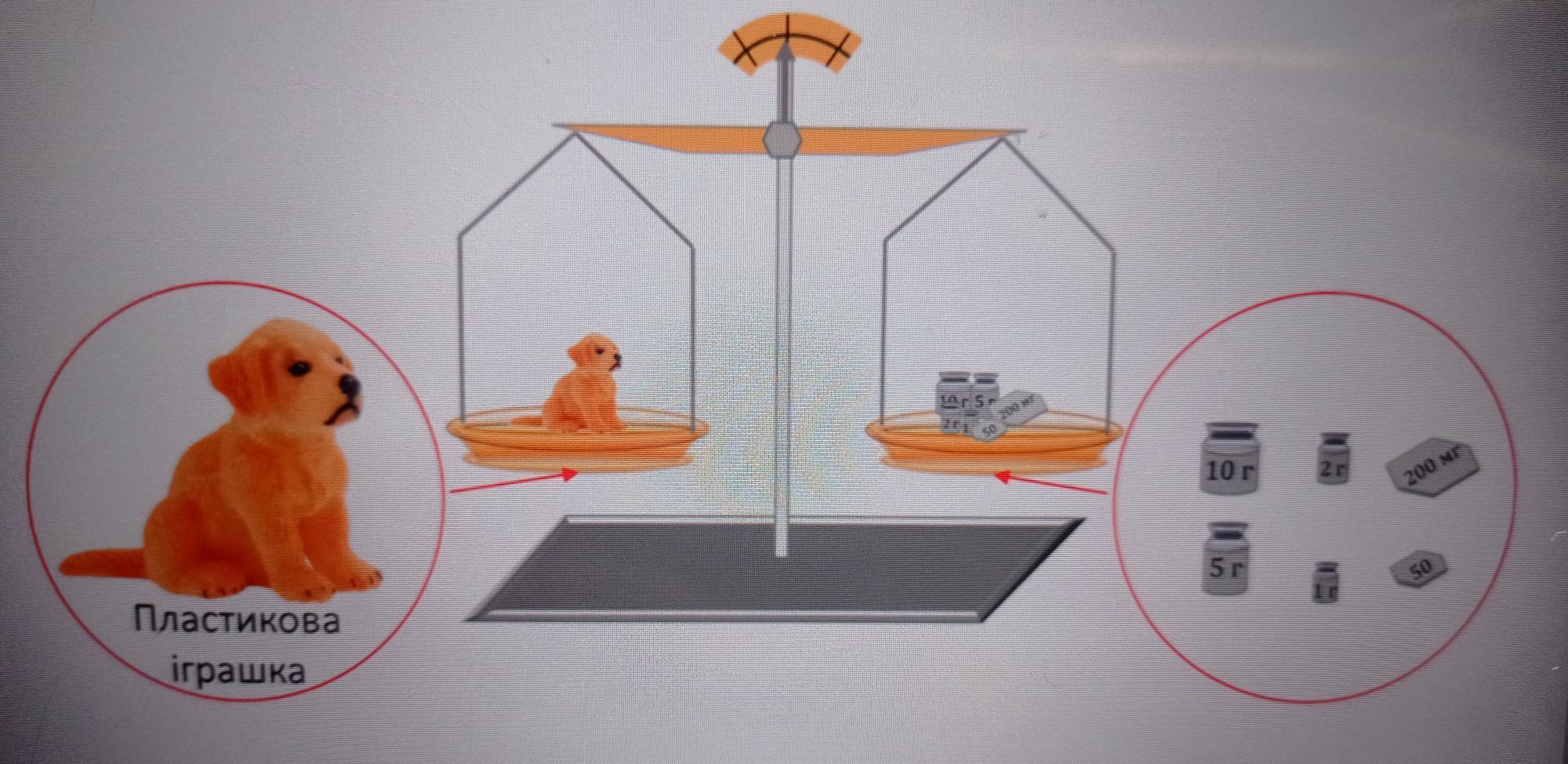 Для того, чтобы узнать массу игрушки, нужно сложить массы всех грузиков на второй чаше весов: