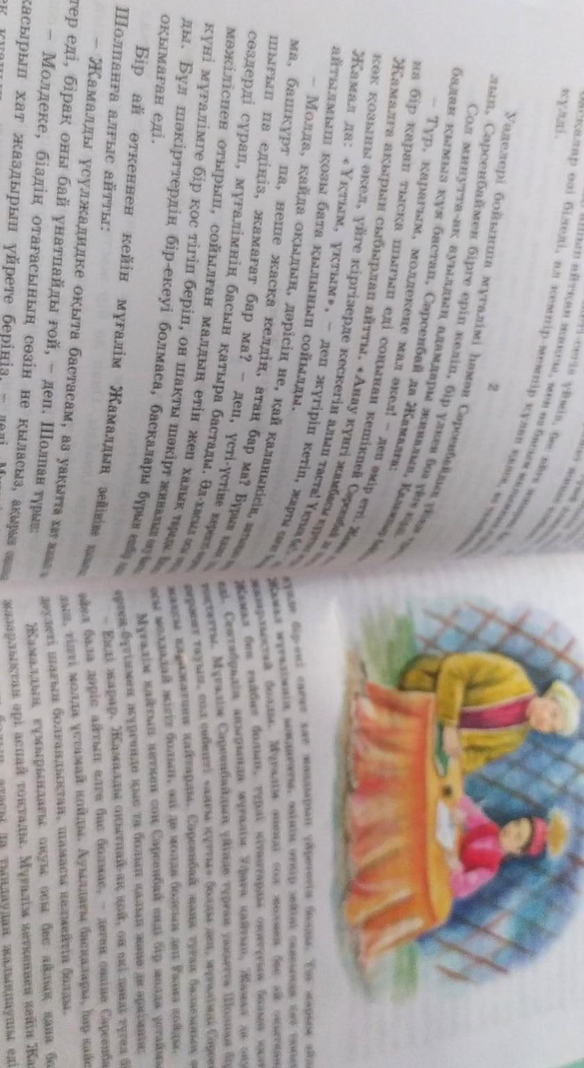 - Молда! Балаларға иман, намаз үйрет, бұрынғы молдалардың оқытқан кітабын оқыт, біздің балаларға сол жетеді, басқалардың керегі жок, - деген соң, лажсыз олардың тілегенін оқытты. Бұрынғы оқымаған балалардың ішінде ең зейіндісі Жамал болып шықты (Жамал осы майда тоғыз толып, онға қарап еді). Бір ай өткеннен кейін мұғалім Жамалдың зейініне қызығып, Шолпанға айтты: