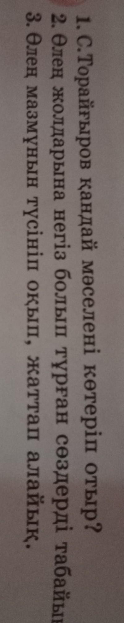 1.Бұл өлеңде автор қазіргі қазақтарды арам ойдан айырғаны жайлы жүрегі қарайған қазақты адам қылатынн жайлы қазіргі кездегі надандарды құдай біркүні жазалайтын жайлы және оның бұл мақсатың ешкім бұза алмайтын жайлы айтылған.