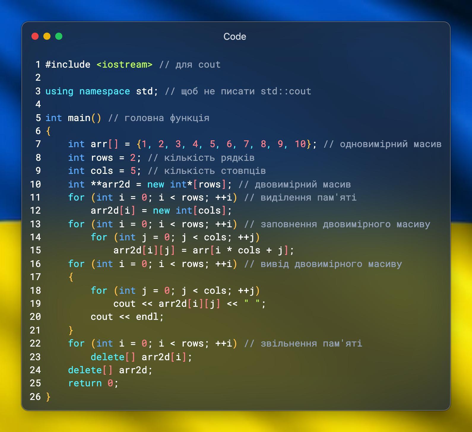 int arr[] = {1, 2, 3, 4, 5, 6, 7, 8, 9, 10}; // одновимірний масив
