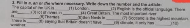 1 in. 2 the. 3 an. 4 the. 5 in. 6 an. 7 the. 8 the. 9 an. 10 in.