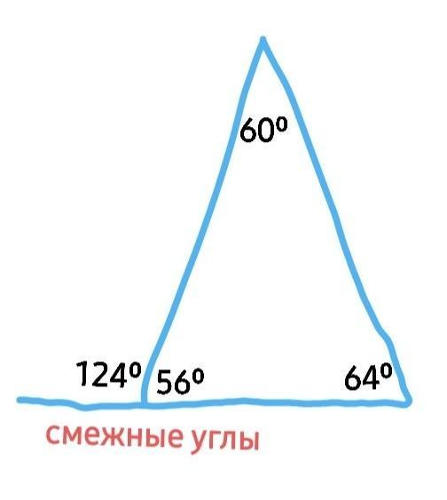 Один із зовнішних кутів трикутника дорівнює 124°, а один із кутів трикутника - 64°.Знайдіть кути трикутника . Дам 30 балів