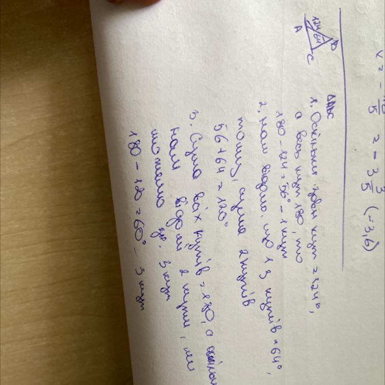 3)180⁰-120⁰=60⁰ (сума трьох внутрішніх кутів трикутника завжди дорівнює 180⁰ )