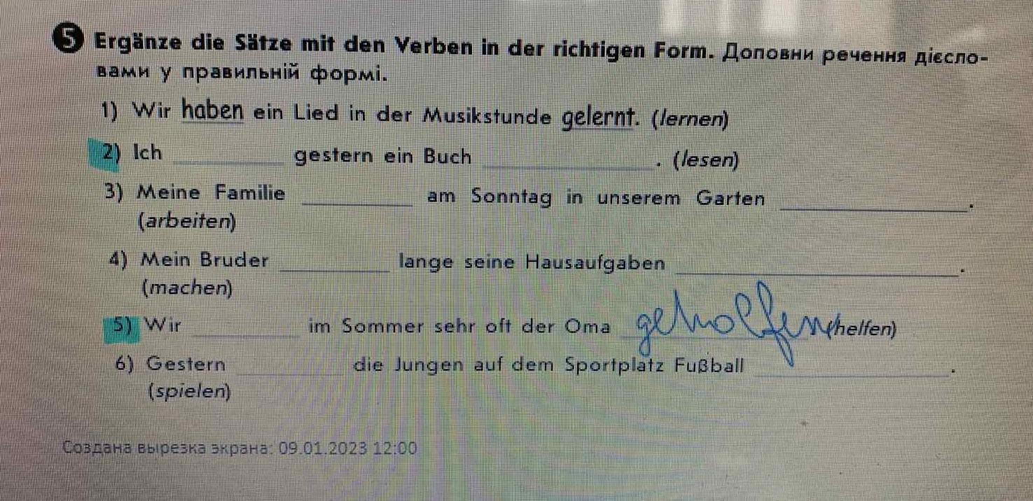 Помогите!!! Скласти речення у минулому часі Perfekt
