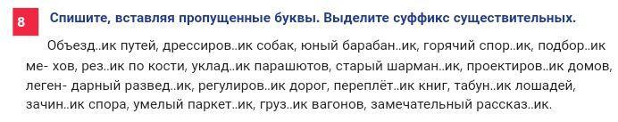 Даю 30 баллов! Спишите, вставляя пропущенные буквы. Выделите суффикс существительных.