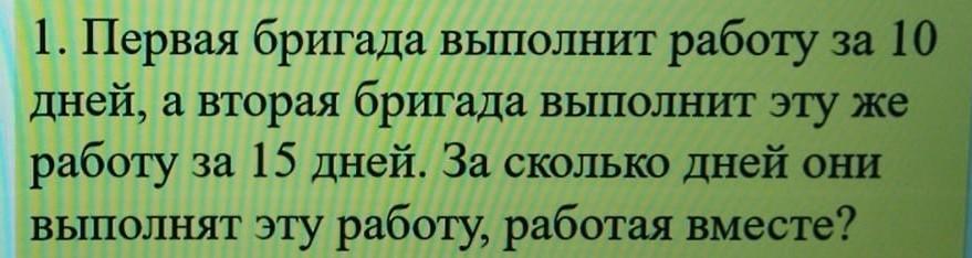1/10 + 1/15 = 3/30 + 2/30 = 5/30 = 1/6 часть задания выполнят вместе за один день