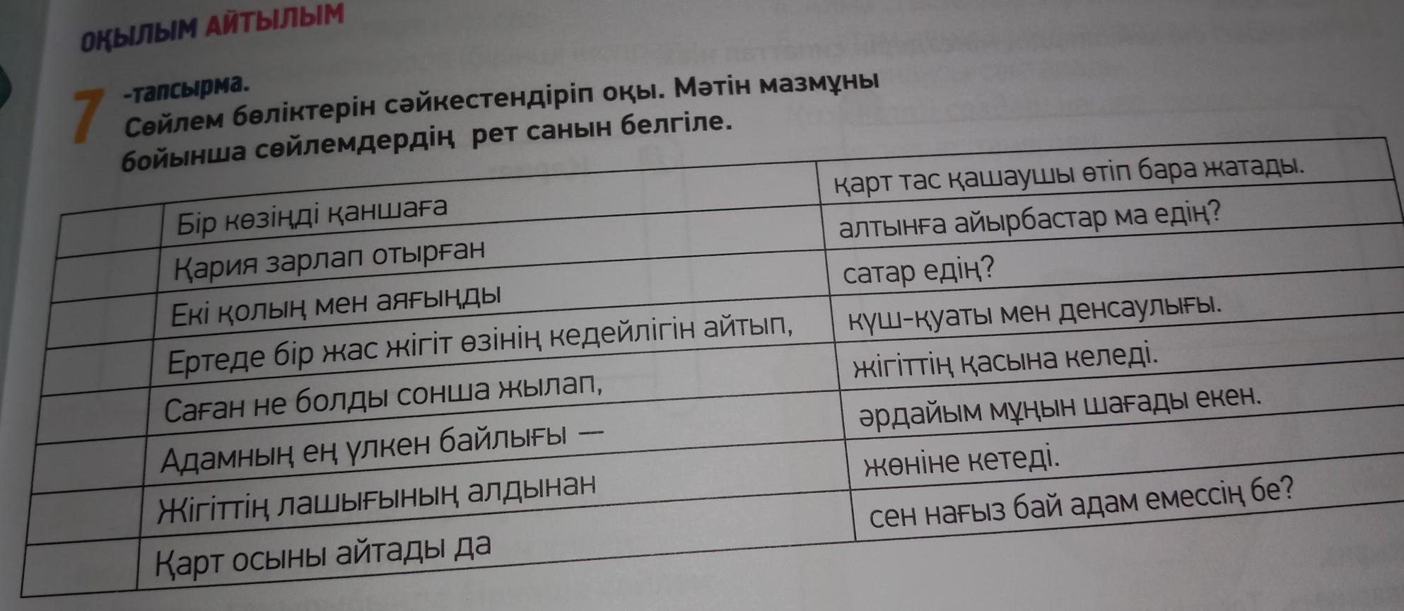 ОҚЫЛЫМ АЙТЫЛЫМ 7тапсырма помогите пожалуйста СРОЧНО