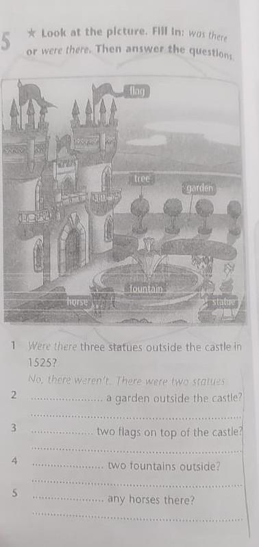 *Look at the picture. Fill in was there or were there. Then answer the questions