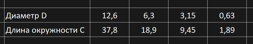 Заполни таблицу (π≈3)