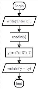 Определить значение функции y=x*х+3x-7. Значение величины х вводятся с клавиатуры.