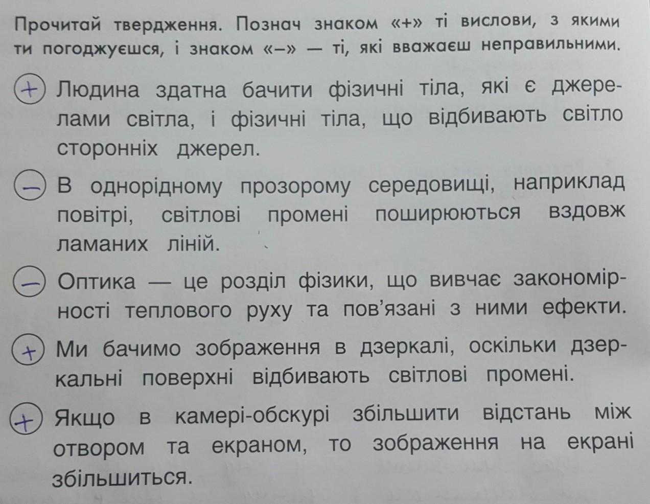 Прочитай твердження. Познач знаком "+" ті вислови, з якими ти погоджуєшся, і знаком "–" ті, які вважаєш неправильними