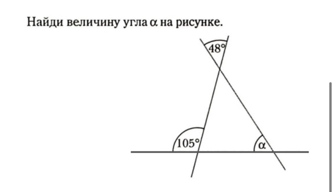 верхний угол b; левый нижний c; угол 48 градусов y; угол 105 z;