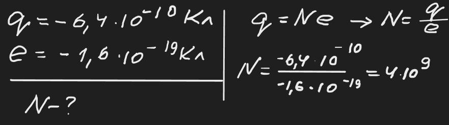 величина заряду -6,4 *10 в -10 Кл. Якій кількості електронів відповідае данний заряд. (е = -1,6 *10 в - 19 Кл)