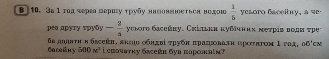2. 100 * 2 = 200м^3 — це 2/5 басейну, яку заповнила 2 труба за 1 годину