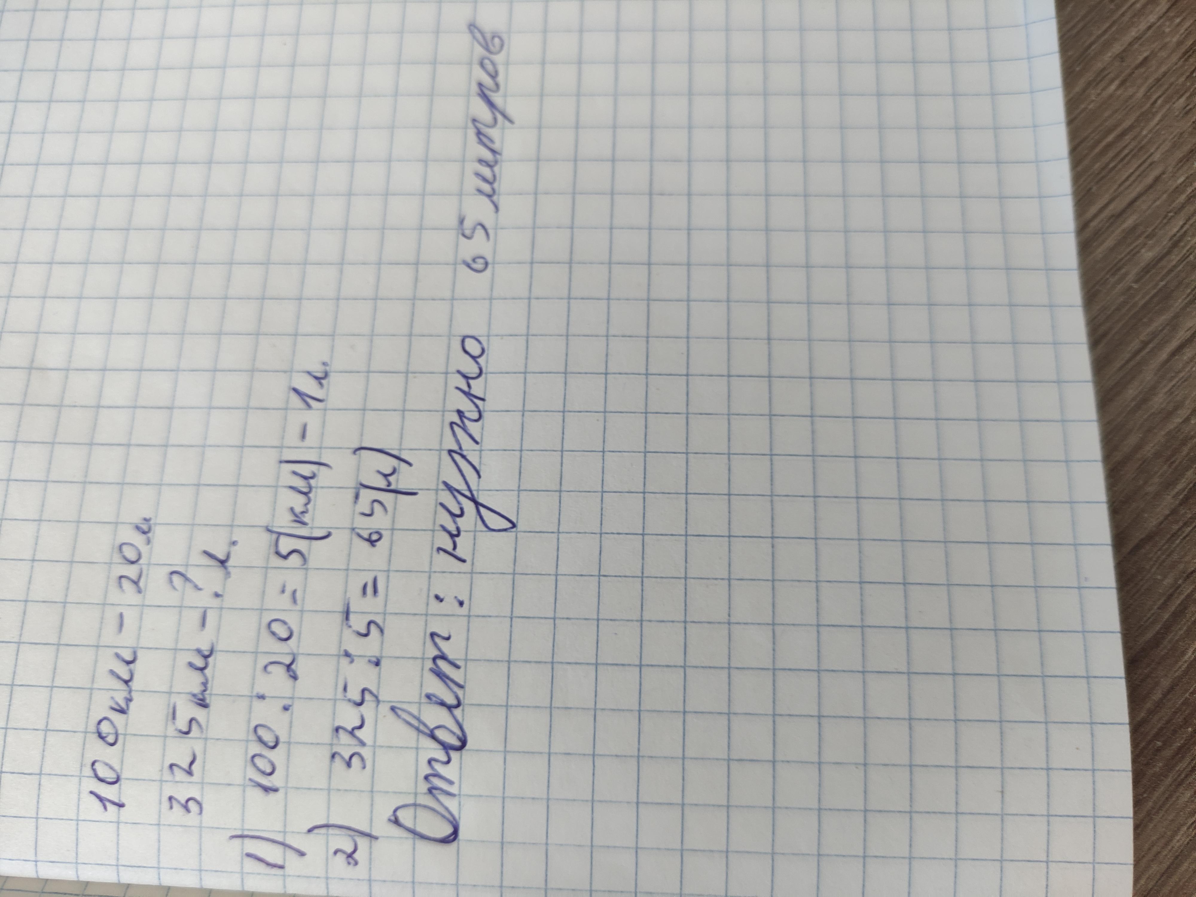 Самолёт потребляет 20 л топлива на 100 км Сколько понадобится топлива чтобы пролететь на расстоянии 325 км