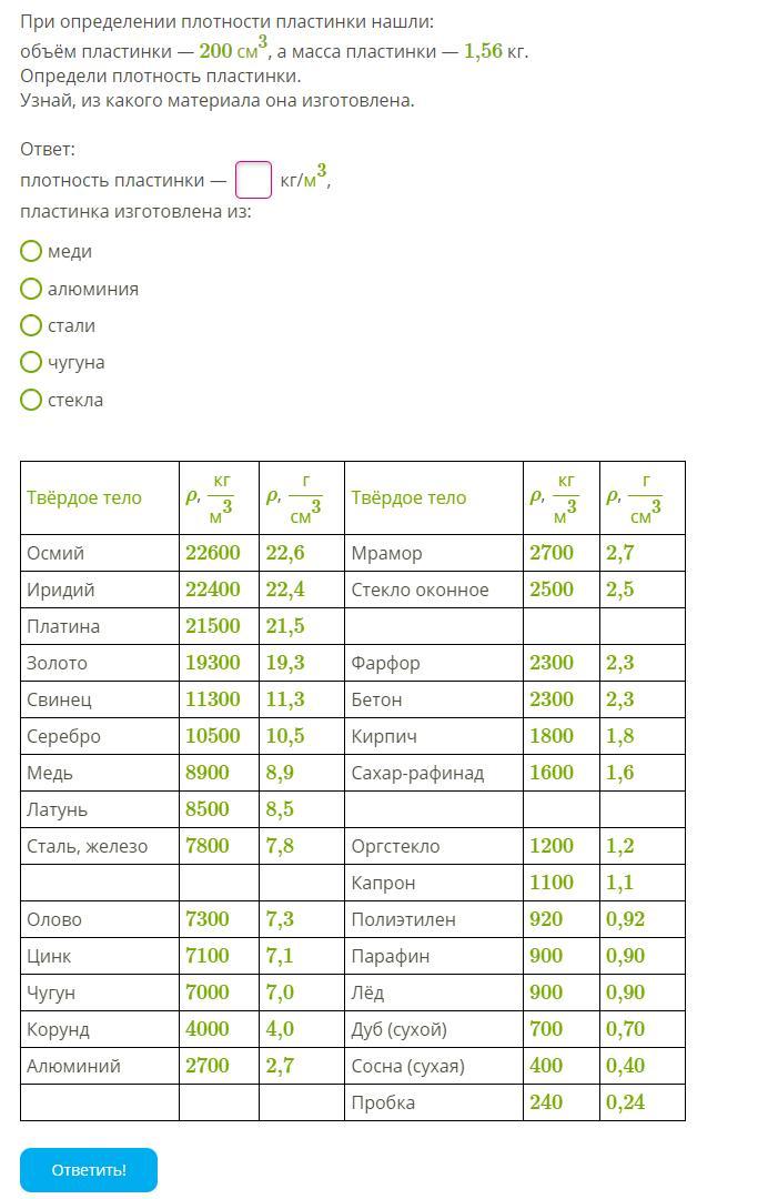 ρ = m / V = 1 560 / 200 = 7,8 г/см³