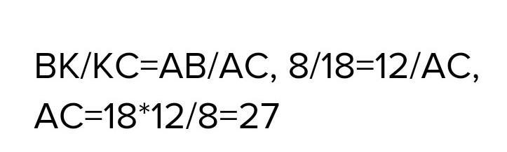 У трикутнику ABC AB=8 см, АС=12 см, ВС=10 см. Знайдіть відрізки, на які бісектриса AN ділить сторону ВС. 4 см, 6 см. 7 см, 3 см. 2 см, 8 см. 5 см, 5 см.