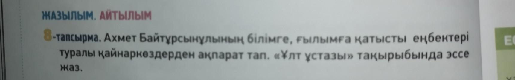 8 тапсырма надо эссе 40 50 слов на казахском кто ответит за 15 мин дам лучший ответ