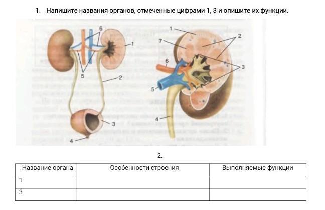 1. Напишите названия органов, отмеченные цифрами 1, 3 и опишите их функции. Название органа 1 3 2. Особенности строения Выполняемые функции