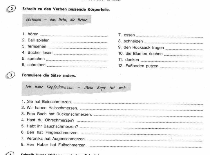 1. Sie hat Beinschmerzen - Ihr Bein tut weh.
