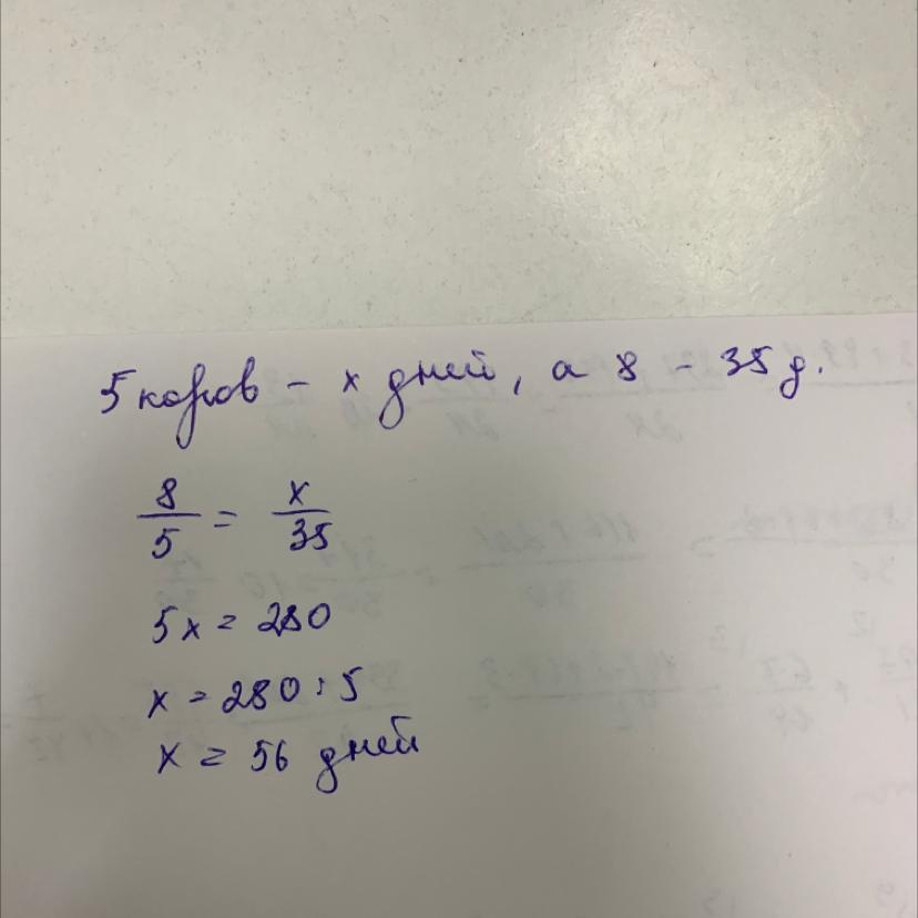 на ферме заготовили корм для восьми коров на 35 дней На сколько дней хватит этого корма для пяти коров если пропорции для всех коров одинаковы