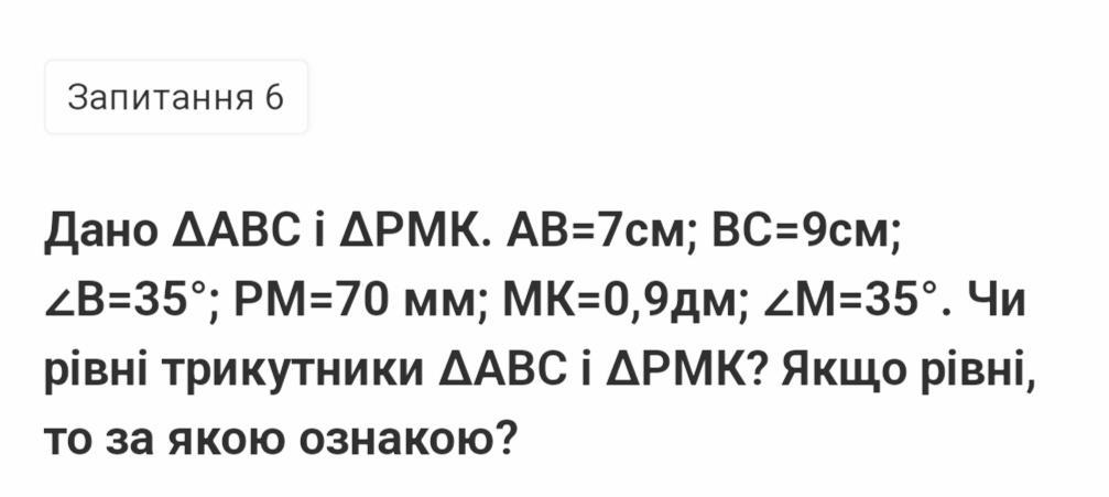 АВ=РМ;ВС=МК;<В=<М;