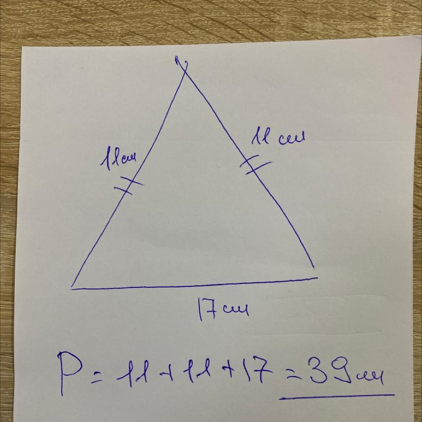 знайдіть периметр рівнобедреного трикутника, основа якого дорівнює 17 см, а бічна сторона – 11 см.