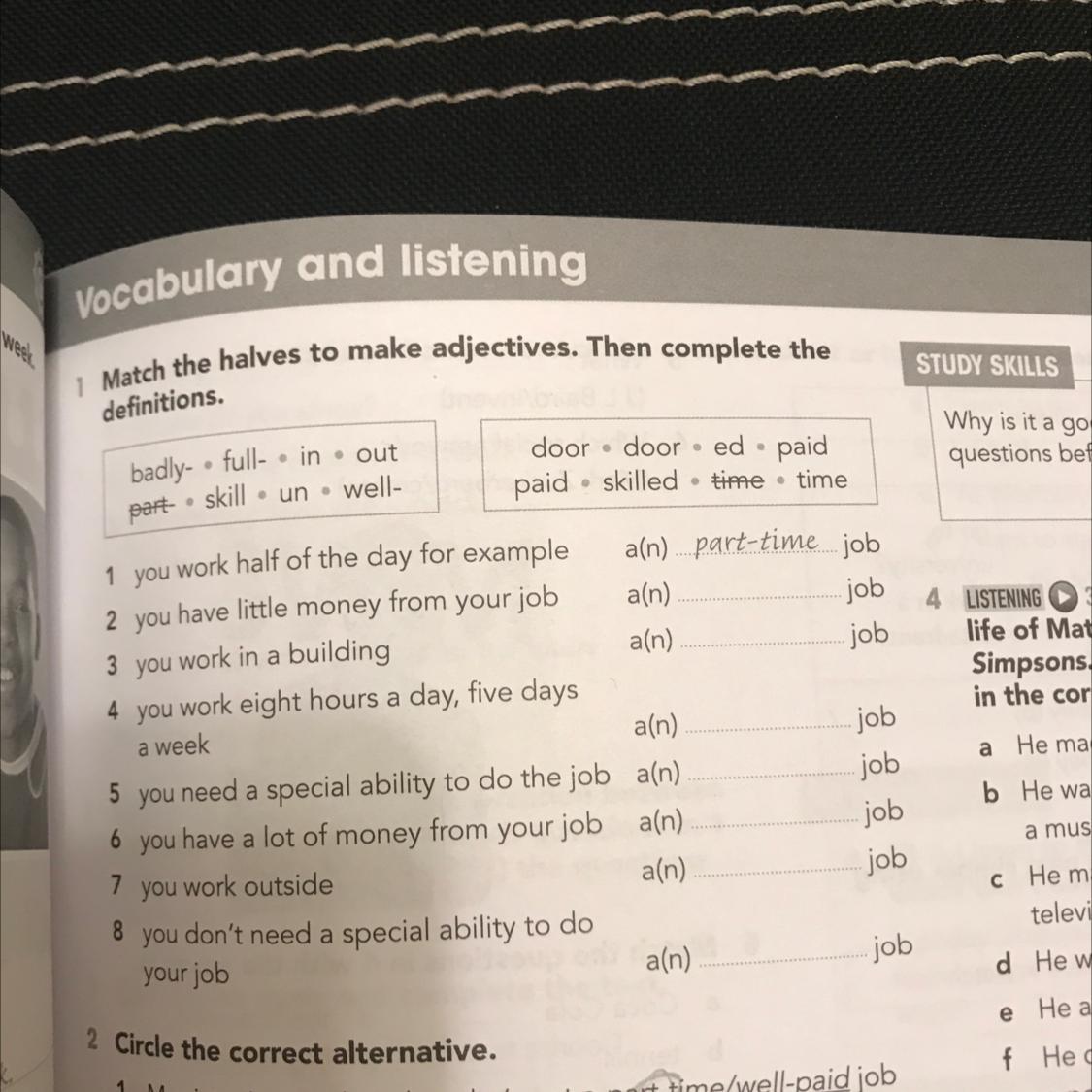 з'єднайте половинки, щоб вийшли прикметники. Потім доповніть визначення