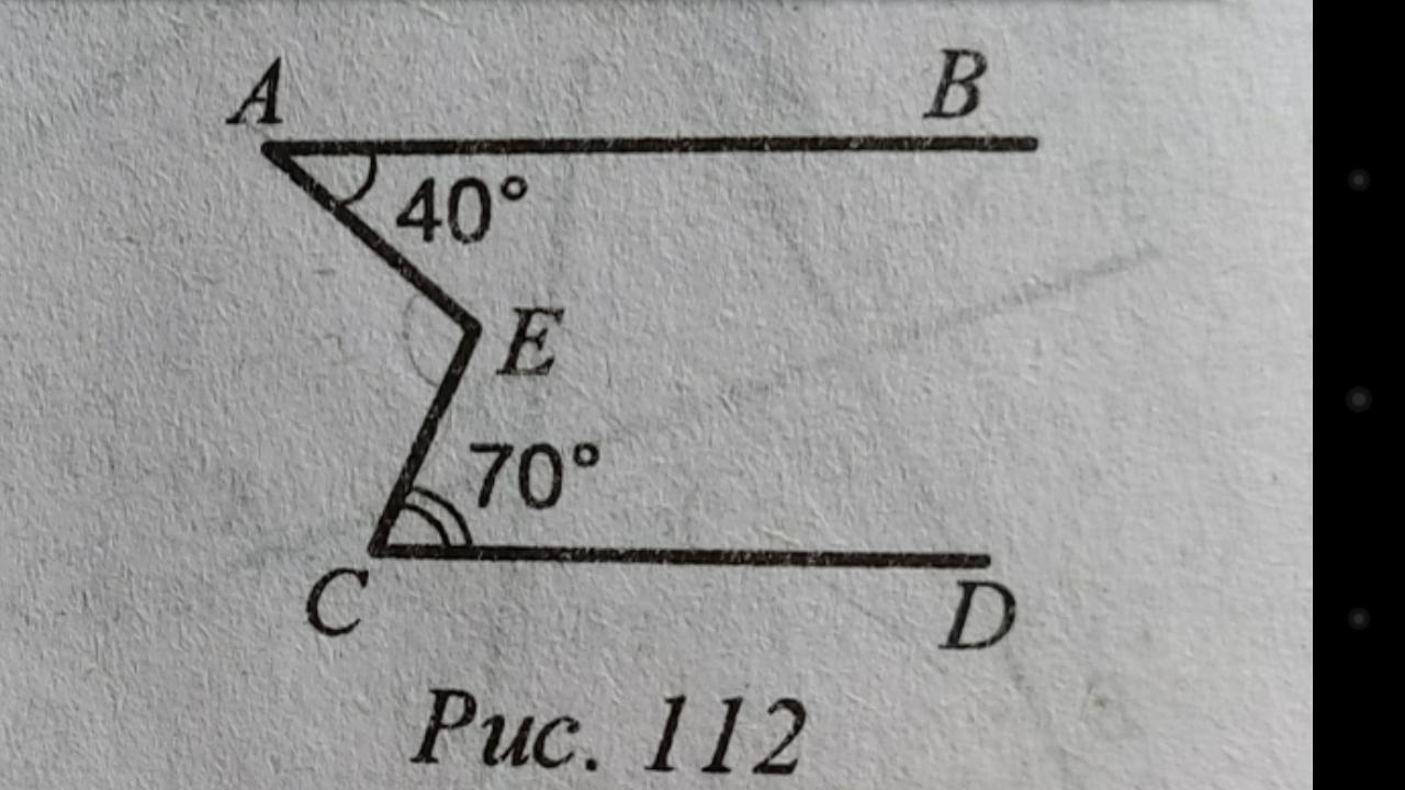 Ha рисунку 112 ABCD. Знайдіть градусну міру кута АЕС, якщо BAE=40°, ZDCE = 70°.