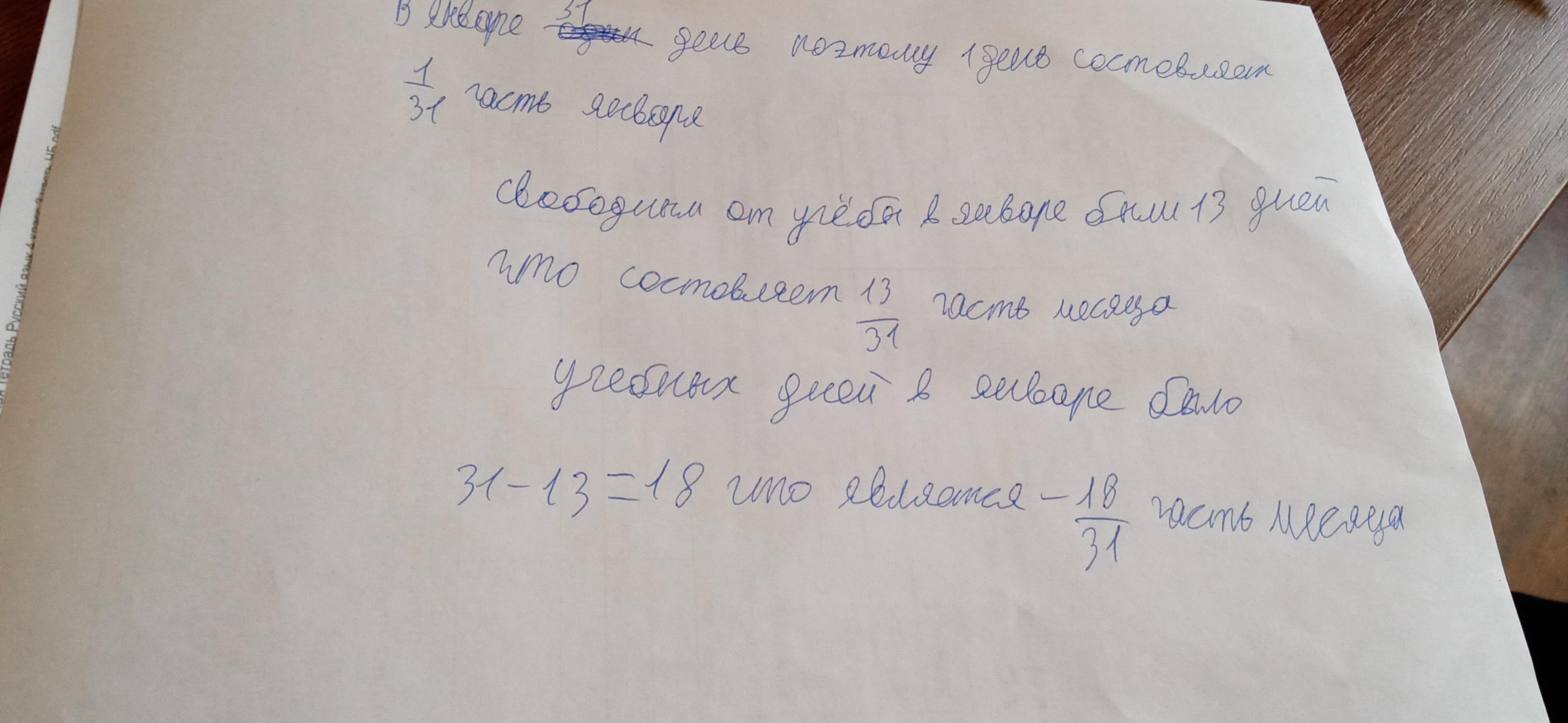 898. В январе 1995 года с 1 января по 10 января были зимние каникулы. 15, 22 и 29 января были вос- кресными днями, а остальные учебными. Какую часть января составили свободные от учёбы дни? Какую часть составили учебные дни?