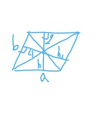 расстояние от точки пересечения диагонали равно 2 см и 3 см ,т.е высота h=2•2 см=4 см и